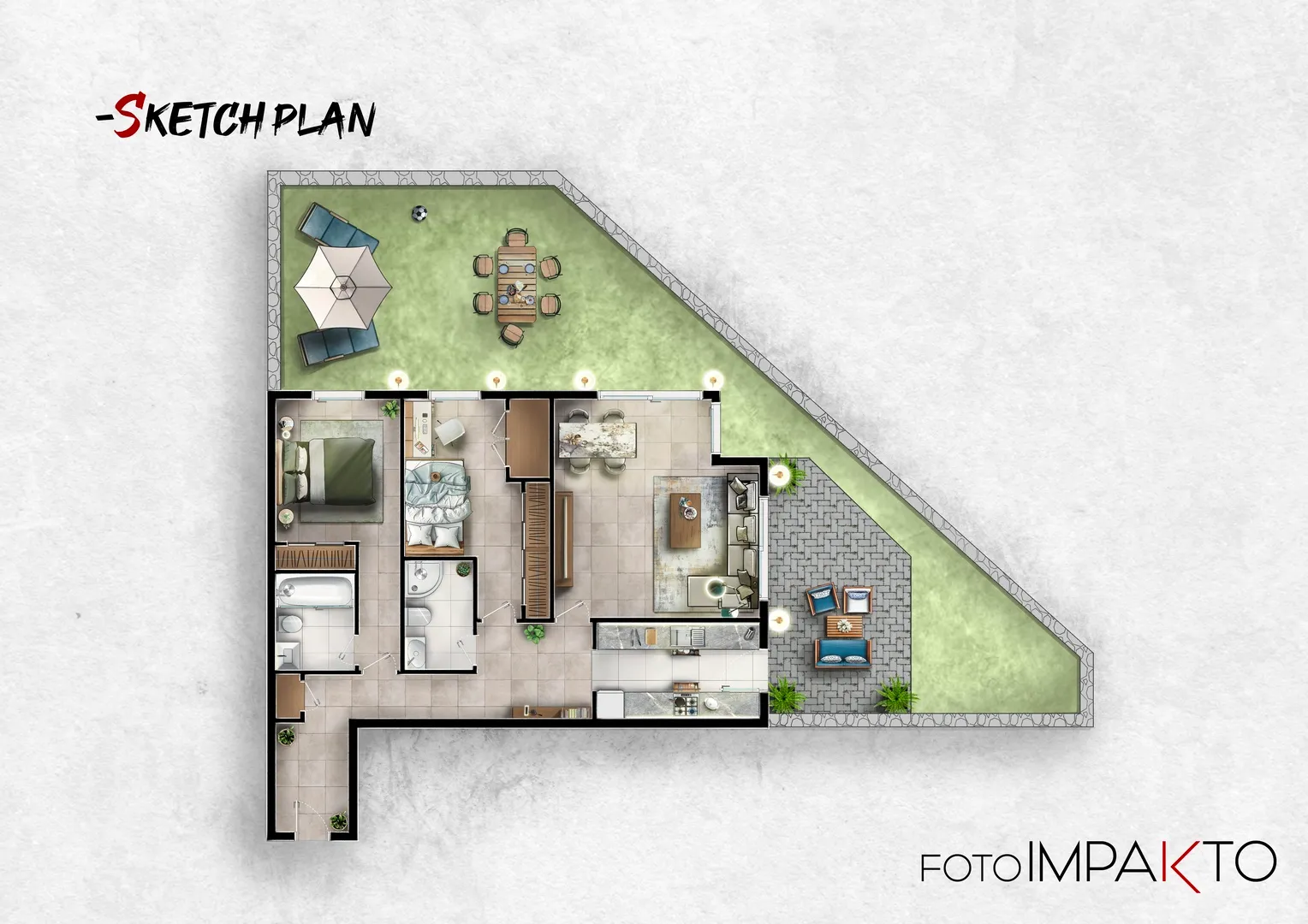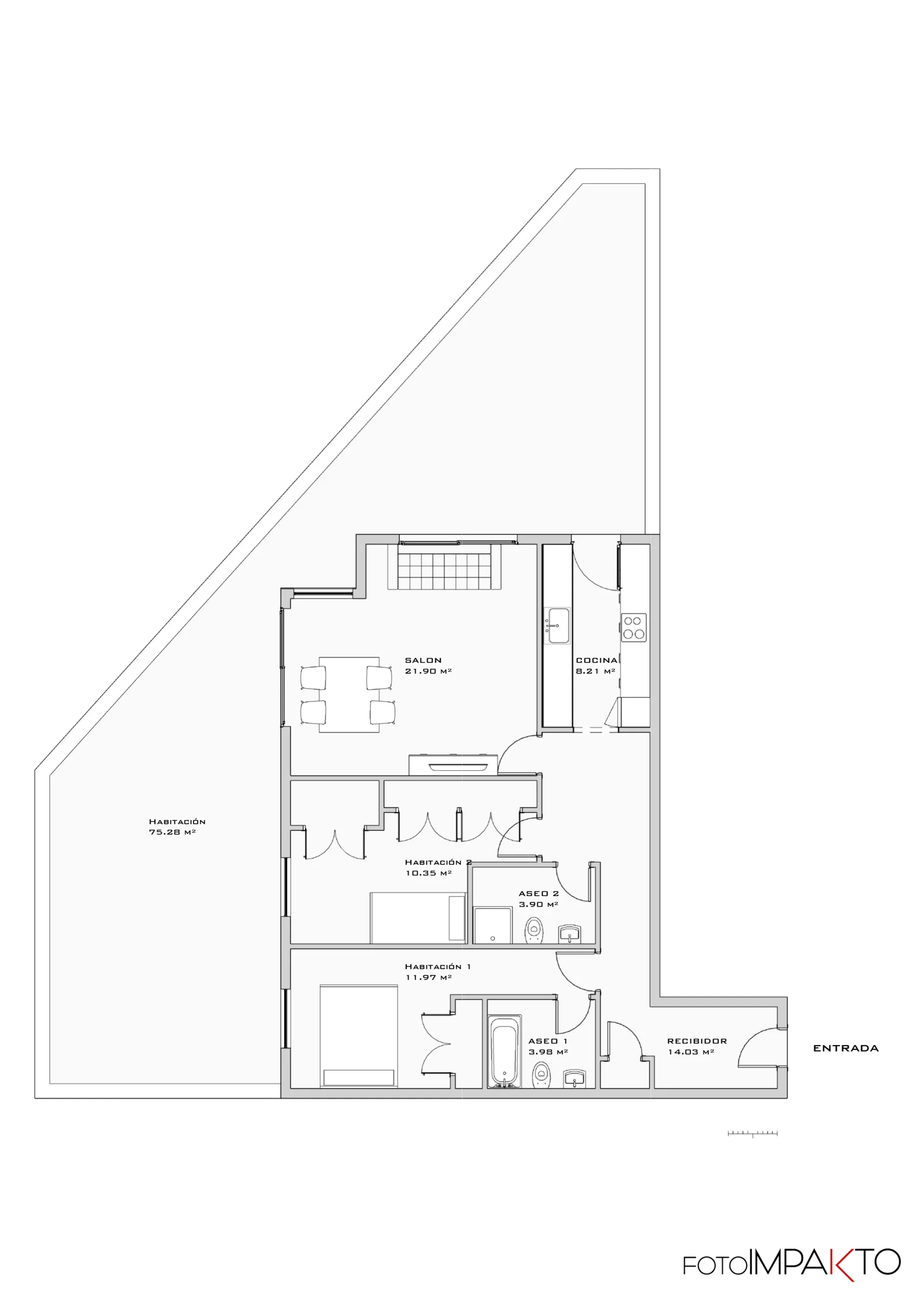 Acogedor proyecto de fotografía inmobiliaria con dos dormitorios y una esplendida terraza.